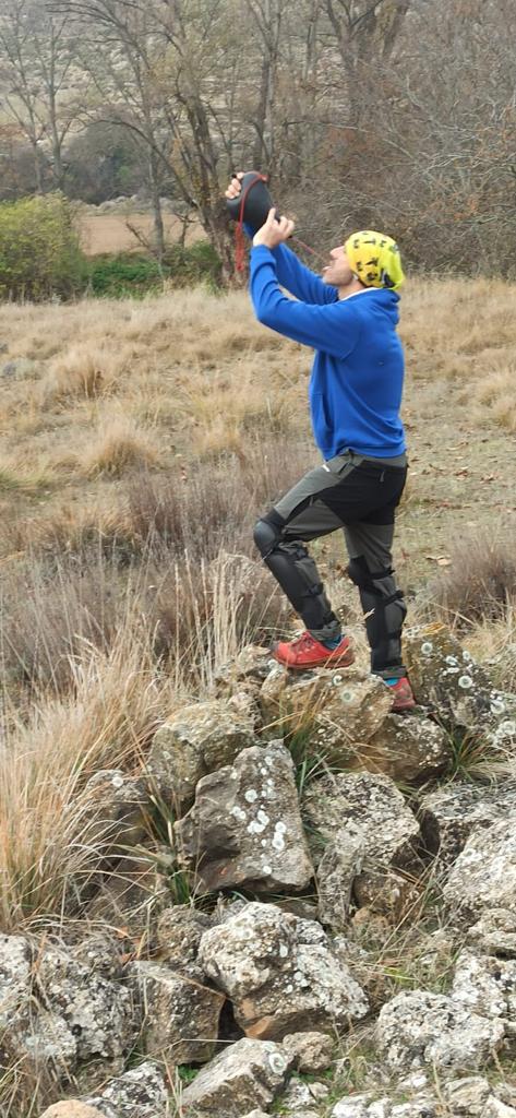 Es un juego de pastores que consiste en sujetar el garrote (cayado del pastor) con una mano en cada lado horizontalmente y sin soltar ninguna de las dos manos saltar el palo poniendo los pies al otro lado.