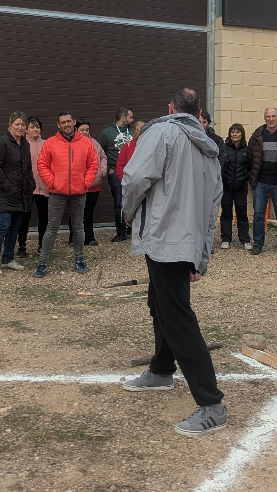 La herramienta utilizada es una pequeña azada que se usaba para esclarecer la remolacha en los surcos y quitar la malas hierbas en los cultivos de maíz, patatas, remolacha, etc. El juego consiste en lanzar la legoneta por debajo de las piernas sin levantar del suelo ninguno de los dos pies.